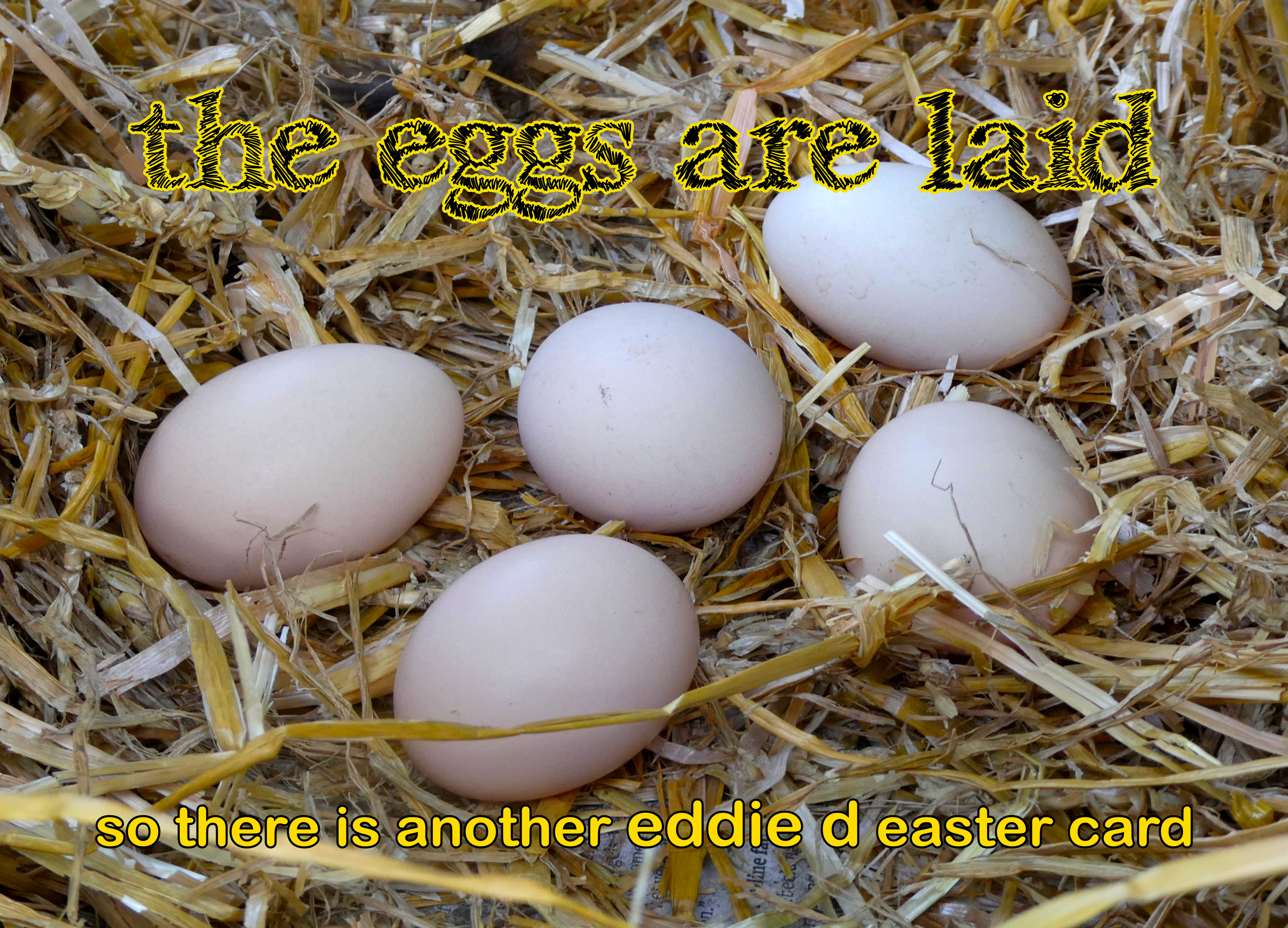 Since 2001 eddie d sends “The Traditional eddie d Easter Card” around the world. The first few years he printed, glued and mailed them by hand, but then he started to use an online print service.