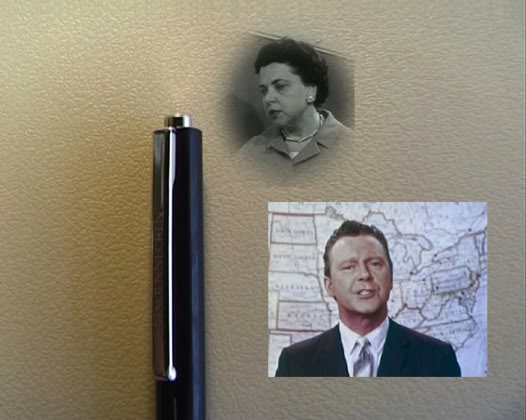 The footage is from an annoying phone-in tv gameshow and a old television commercial, rhythmically accompanied by a man playing the spoons. The work also shows that a nice tablecloth is always recommended.