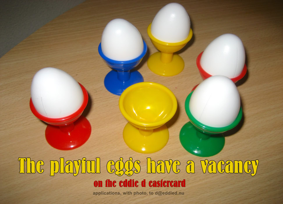 Since 2001 eddie d sends “The Traditional eddie d Easter Card” around the world. The first few years he printed, glued and mailed them by hand, but then he started to use an online print service.