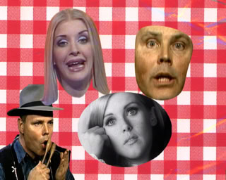The footage is from an annoying phone-in tv gameshow and a 1960's television commercial. All is rhythmically accompanied by a man playing the spoons and using his mouth as a percussion instrument.