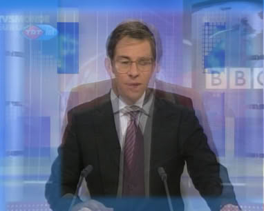 It doesn’t matter if you’re watching your daily news broadcast on BBC, the Dutch NOS, on French or Turkish TV channels: all over the world the news is blue, intros always feature a terrestrial globe, all anchormen and -women are positioned in exactly the same spot – and do these often-used bleeps perhaps contain a secret (morse) code? In ‘Heads and Globes, Similarity Matrix’, eddie d has investigated some striking similarities between news broadcasts from several countries, collected over the past ten years – the title refers to a so-called ‘similarity matrix’, a mathematical way to show resemblances between several points. The editing style of this work is related to classic scratch video; with 25 edits per second, eddie d strolls ahead in the speed race of new media.