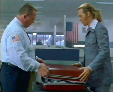 In our high-speed world, customs officials are seen as a delay. The atmosphere in Travelocity is full of 1950s tranquillity, but looking at this work from our fast-moving world (including terrorism), this peace and quiet can only appear deceptive. A jovial uncle-type American customs officer is checking the suitcases of a well-turned-out young man. There are no neon lights, long queues or so much as a drop of sweat to be seen. As usual in eddie d's work, the staccato editing and the soundtrack pulverize all that seems to be self-evident. The locks on the suitcases sound as rhythmical as machine-gun fire. Lids open and close, and human bodies sway jerkily back and forth. As a matter of routine, with eyes closed, the young globetrotter and the experienced customs officer carry on exuding innocence.