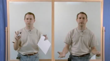 eddie d continues his experiments with the deconstruction of language, and pushes them to extremes. As in his other works, he makes use of the standard TV-image of a 'talking head' that looks straight into the camera. The man's words have been chopped up in such a way that only loose letters and sounds remain. The resulting choreography of his head alternates between frozen standstill and jerky movement - a difference that limits itself to a few millimetres.